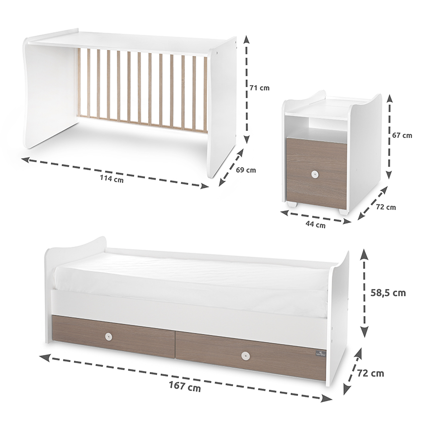Suitable for mattress dimentions 110x62x12 cm (mattress not included in the set)