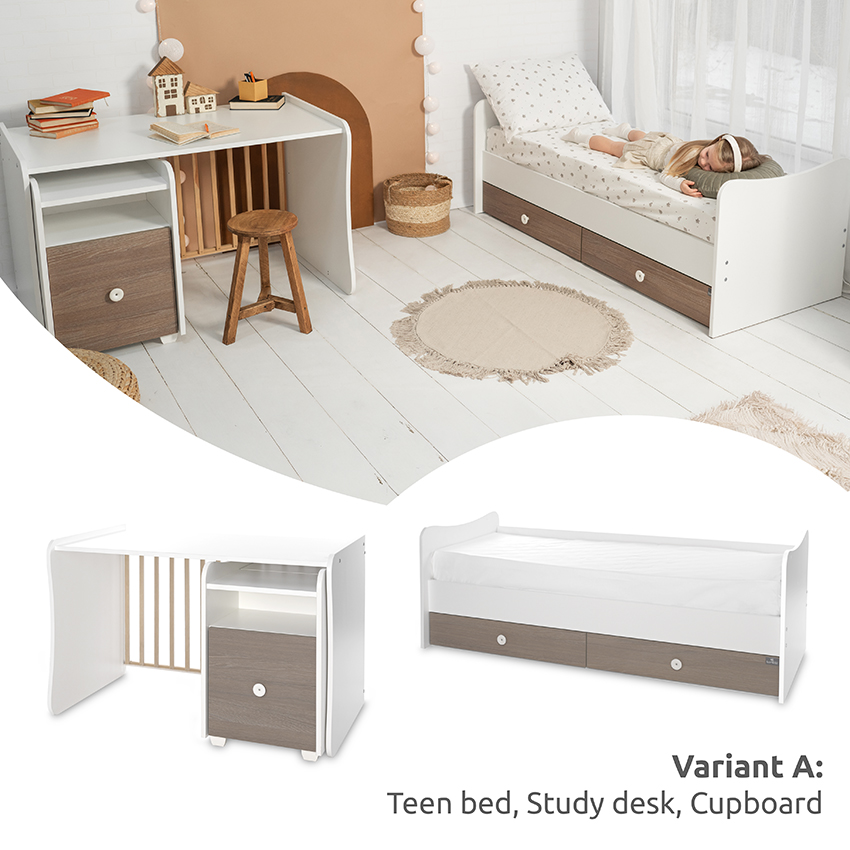 Variant A - teen bed, study desk, multifunctional dresser